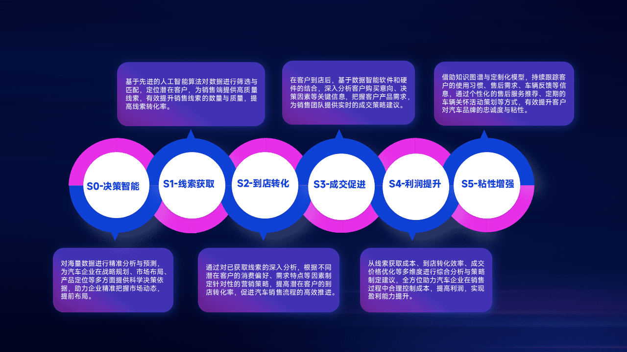 通过拓宽潜在客户来源、、优化线索分配并提高到店转化率,,以增强销售效率。。同时,,,,利用线索数据不断优化分析模型,,有效提升转化率,,,,扩大营销影响力。。。